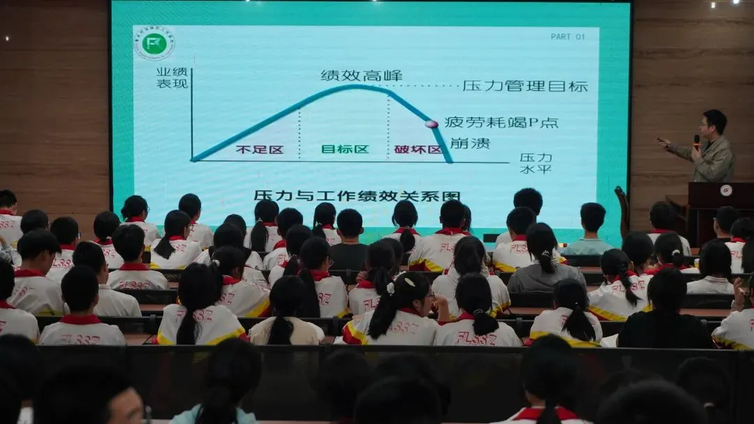 心理专家杨靖老师为200余名初三学生详细讲解自我心理压力调试的方式和技巧,通过游戏互动、音乐放松等方法有效缓解同学们考前的心理压力,引导他们以积极健康的心态迎接中考。