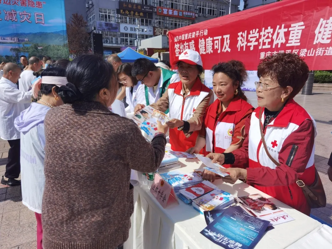 梁平区红十字会参加“人人讲安全、个个会应急——排查身边灾害隐患”全国防灾减灾日集中宣传活动,通过设置咨询台、发放宣传资料、讲解急救技能等形式,让防灾减灾知识深入人心。