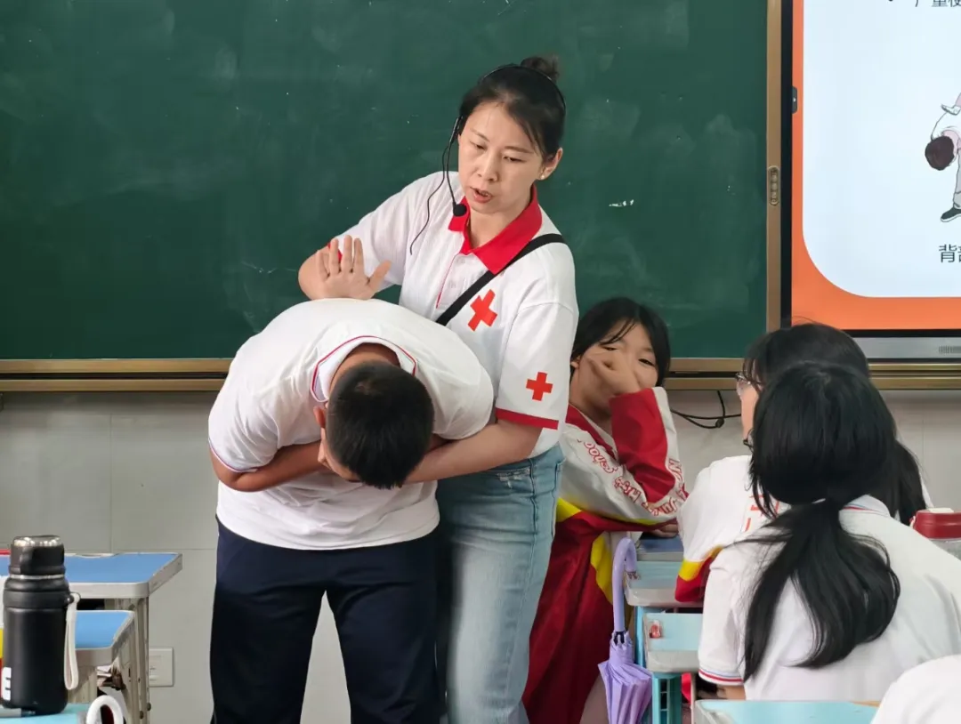 “救在身边”红十字志愿服务队的应急救护师资张凤旭,通过理论授课、现场演示、实践操作、典型案例分享等方式,为同学们讲解了心脏骤停的处理方法和防溺水知识。他用生动的语言和肢体动作,深入浅出地传授急救技能,课堂上学生们积极参与互动,学习热情高涨。