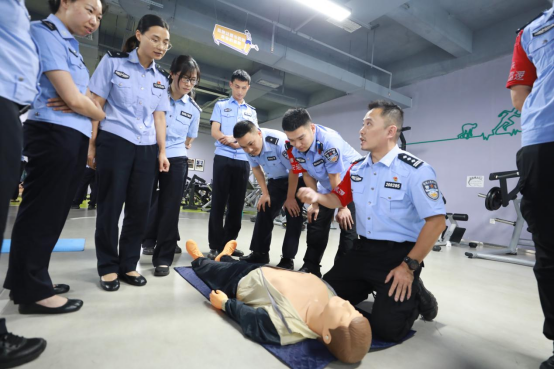 此次培训由璧山区红十字会专业师资团队授课,73余名公安干警参与培训。培训内容紧扣“理论+实操”模式,涵盖心肺复苏(CPR)、创伤包扎、气道异物梗阻急救(海姆立克法)等常见突发事件的应急处理技能,并重点讲解了AED(自动体外除颤仪)的使用方法。