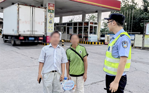 结合监控线索与走访信息,民警辅警最终在白彭路边的中国石油加油站找到因炎热体力不支的王女士,将其安全送回家,张先生激动地握着民警的手连声道谢。