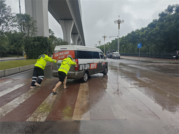 交巡警支队第一时间对涉水路段实施交通管制,引导车辆绕行;民警辅警冒雨清理堵塞排水口的杂物,并帮助转移积水被困车辆;双福派出所民警迅速抵达内涝现场疏导群众、排查隐患、设置警示标识。