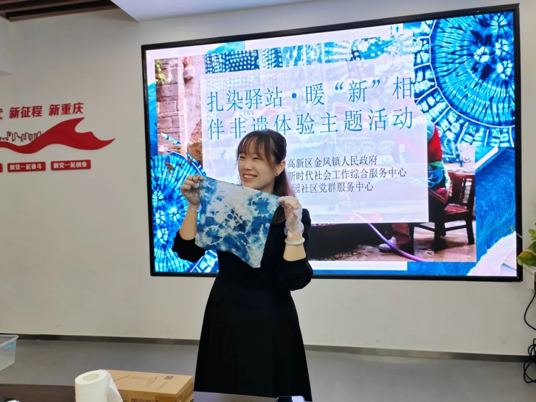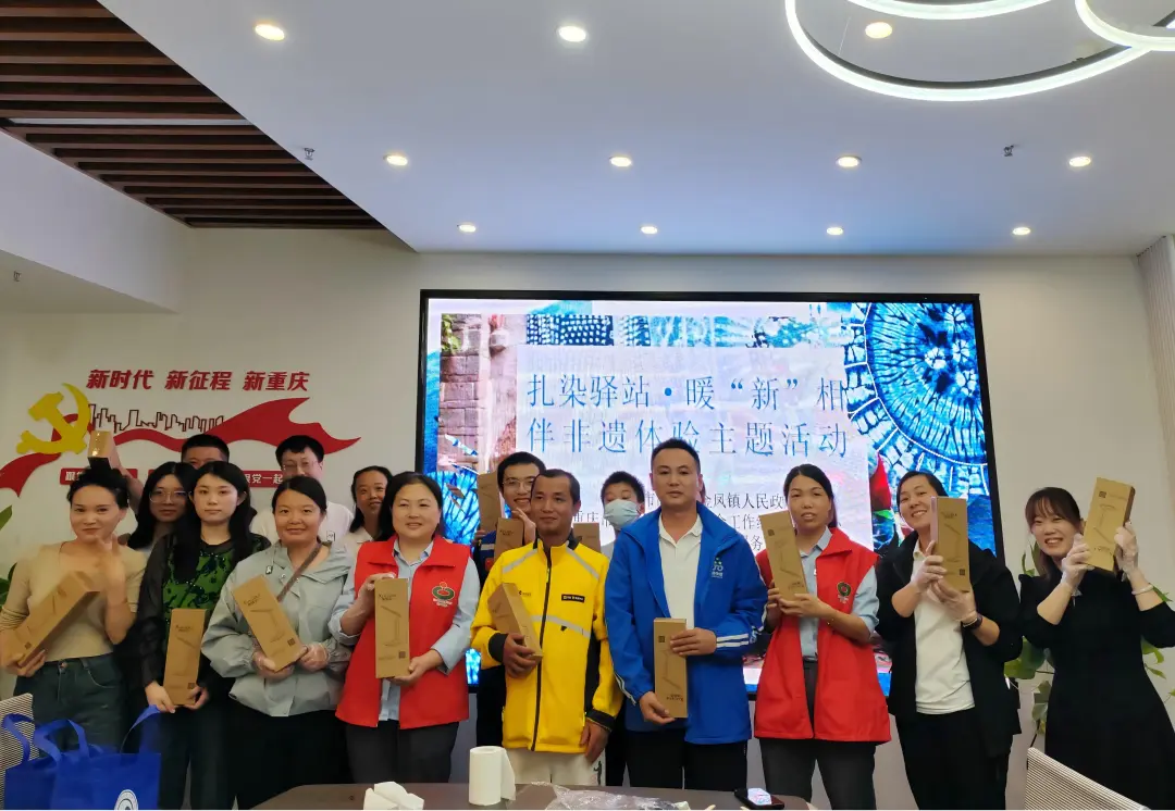 为丰富新就业群体的精神文化生活,感受“扎染”非遗传统技艺,9月23日,重庆市高新区金凤镇人民政府联合重庆市璧山区新时代社会工作综合服务中心、重庆市高新区金凤镇金凤佳园社区党群服务中心在金凤镇"暖心驿站"开展了"扎染驿站·暖'新'相伴"非遗体验活动,共计近20名新就业群体及其家属参与。