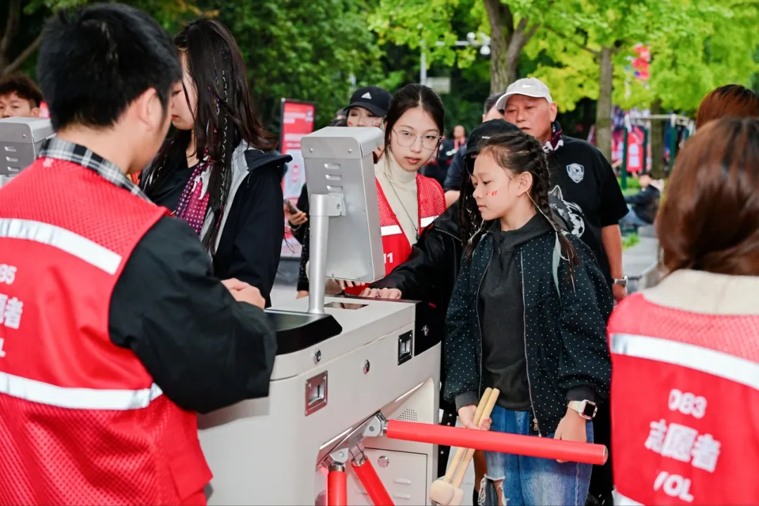 比赛当日,志愿者队伍以 “专项小队” 模式投入服务,展现出高度的秩序性。入口处,检票引导组志愿者严格按照规范流程核验信息,用统一的微笑问候与清晰指引,让观众入场效率显著提升,现场未出现拥堵排队现象;看台区域,应援包发放组志愿者定点值守,有序为观众递上满载关怀的物资,同时耐心解答观赛咨询;赛场周边,秩序维护组志愿者定时巡查,及时清理垃圾、疏导人流,守护赛场环境整洁与通行顺畅;应急机动组则随时待命,针对突发需求快速补位,成为赛事保障的 “机动力量”。各组协同联动,让整场赛事的服务工作忙而不乱、井然有序。