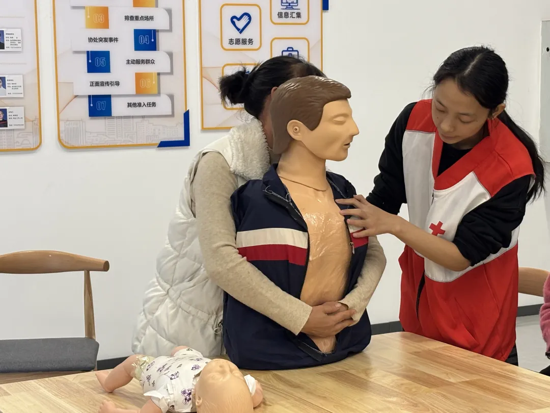 活动现场,应急救护师资志愿者以真实案例切入,深入浅出地讲解了心肺复苏(CPR)、自动体外除颤器(AED)使用、海姆立克急救法及创伤包扎等核心技能。