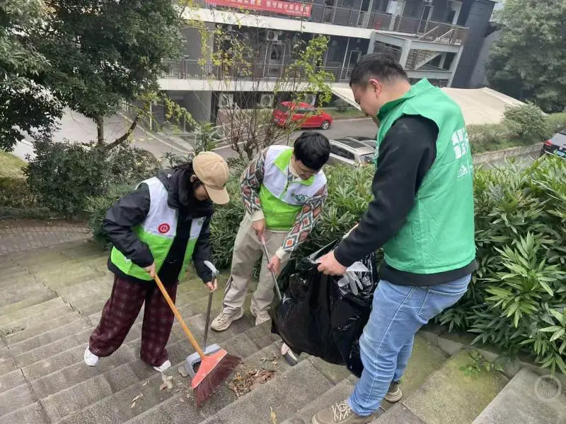 科普环节结束后,众人兵分多路,手持扫帚、夹子、垃圾袋等清洁工具,对社区公共绿地、沿街花坛、台阶过道、健身广场等区域展开“地毯式”清理。大家分工协作,不怕脏、不怕累,仔细捡拾烟头纸屑、清理废弃杂物,经过近两小时的努力,共清运生活垃圾、废弃杂物十余袋。原本散落枯叶的绿地焕然一新,台阶过道变得干净整洁,健身广场器具光洁如新。