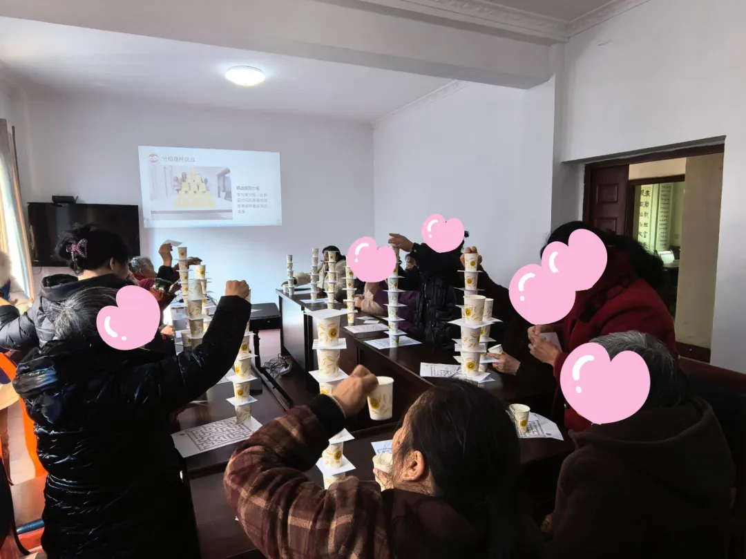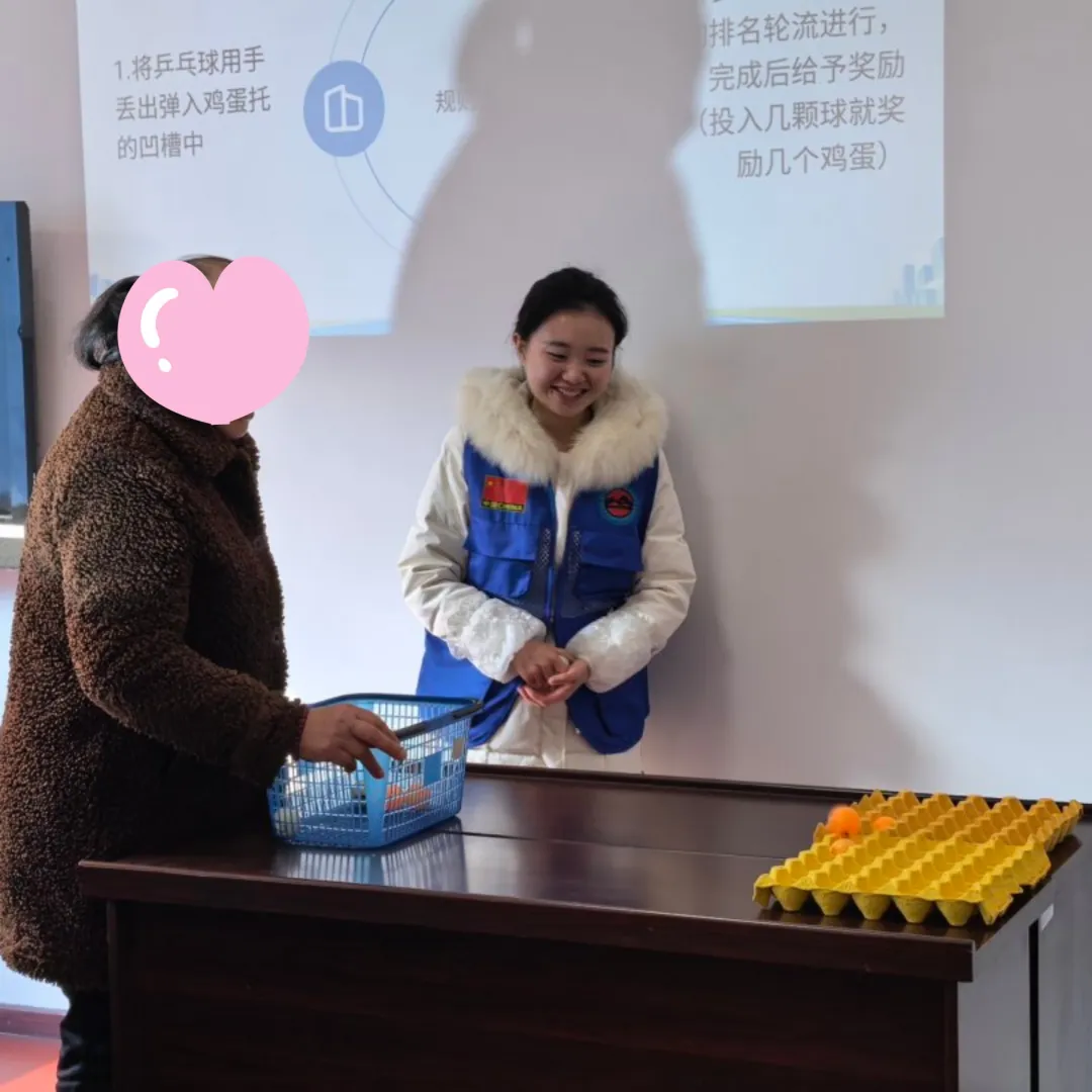 紧接着的纸杯叠叠乐游戏将活动推向小高潮,参与者们自由分组,在规定时间内合力将纸杯叠成指定高度,现场加油声、欢笑声此起彼伏;社工为速度最快、堆叠最稳的小组送上热烈掌声,充分调动了大家的团队协作热情。最后的乒乓球归位游戏趣味十足,社工介绍规则后,参与者按照纸杯叠叠乐的小组排名依次上场,将乒乓球用手丢出并弹入鸡蛋托凹槽中,每成功投入一颗球,就能获得对应数量的鸡蛋奖励,这份小惊喜让大家的参与热情持续高涨。