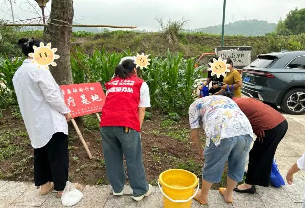 6月14日下午,在璧山区民政局、璧山区大兴镇人民政府的支持下,璧山区新时代社会工作综合服务中心、璧山区大兴镇渝康家园联合开展了"植绿疗心·共筑希望"特色农疗康复活动。活动现场,大家头戴草帽、手持农具,在社工的指导下,有序完成挖坑、栽种、浇水等完整的种植流程。通过亲近自然的劳作方式,参与者在实践中不仅掌握了种植技能,更有效舒缓了情绪压力,提升了专注力和生活技能,展现了农疗康复的良好成效。